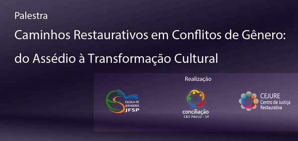 A Divisão da Escola de Formação e Aperfeiçoamento de Servidores - DIES, em parceria com a Divisão de Apoio à Conciliação de São Paulo - CECON, e o Centro de Justiça Restaurativa São Paulo - CEJURE, convida a todas e todos para a Palestra “Caminhos Restaurativos em Conflitos de Gênero: do Assédio à Transformação Cultural", ministrada pela Doutora Carla Boin.