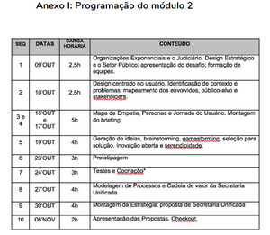 Módulo 2 - Design estratégico e design de serviços: Capacitar para ações inovadoras, com instrumentos e técnicas para a construção de práticas de inovação em níveis tático e operacional, a serem integradas em um processo contínuo da organização. Carga horária: 30 horas