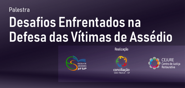 A Divisão da Escola de Formação e Aperfeiçoamento de Servidores - DIES, em parceria com a Central de Conciliação de São Paulo - CECON e o Centro de Justiça Restaurativa São Paulo - CEJURE, convida a todas e todos para a Palestra Desafios Enfrentados na Defesa das Vítimas de Assédio, que será ministrada pelo advogado e autor José Lúcio Munhoz e pela desembargadora aposentada e autora Maria de Fátima Zanetti Barbosa e Santos, no dia 24 de abril, às 18h.