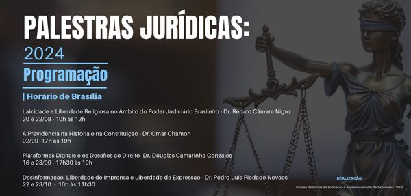 A Divisão da Escola de Formação e Aperfeiçoamento de Servidores – DIES convida a todos para as Palestras Jurídicas 2024.