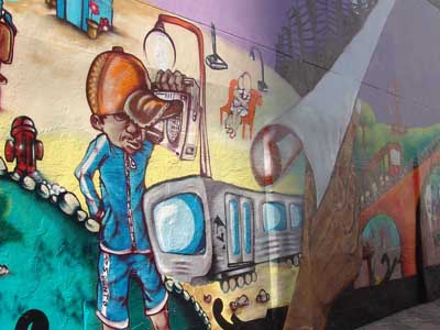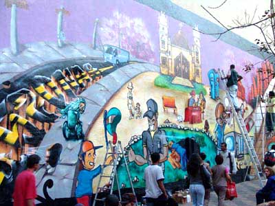 Os painéis foram pintados por quatro jovens artistas da Cidade Tiradentes, que visitaram os bairros escolhidos, efetuando pesquisa sobre a sua história junto aos moradores e comerciantes.