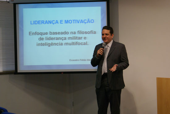 O major do Exército Evandro Fábio Stephano, especialista em Planejamento Estratégico Organizacional e Gestão de Projetos, falou aos servidores sobre o conceito de liderança, a filosofia de liderança da missão pela finalidade e a motivação pela liderança interior, a teoria da inteligência multifocal, entre outros tópicos.