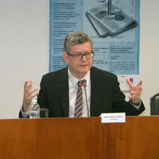 Em sua apresentação, Caio abordou as mudanças ocorridas no jornalismo na última década com a chegada da internet. O jornalista enumerou os problemas e os desafios que a imprensa enfrenta com a nova ferramenta, pois com a internet, “todos têm poder de mídia, não mais apenas os donos dos grandes jornais”.
