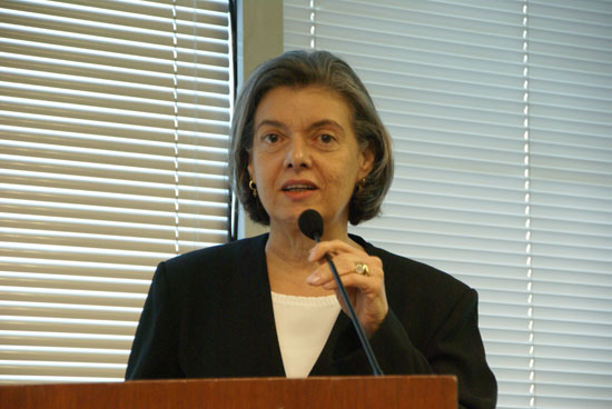 Em seguida, a ministra do Supremo Tribunal Federal, Carmen Lucia, exaltou algumas mudanças trazidas pela era digital. “A revolução tecnológica mudou o sentido de tempo e espaço. Hoje estou nesta palestra, mas sei o que está acontecendo em meu gabinete em Brasília, por exemplo”. Carmen ainda falou da publicidade e transparência do Poder Judiciário no Brasil, já que é o único país em que sessões da Corte são transmitidas ao vivo, bem como foi a primeira nação a adotar a publicação eletrônica de decisões judiciais.