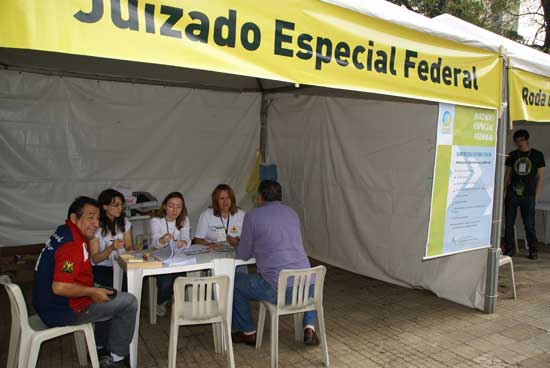 Numa área reservada ao Juizado Especial Federal foram dadas orientações sobre como o cidadão pode ingressar com ação visando à revisão de benefícios, auxílio-doença, aposentadoria por invalidez, pensão por morte, FGTS entre outros. Dezoito pessoas foram atendidas e instruídas sobre como proceder.