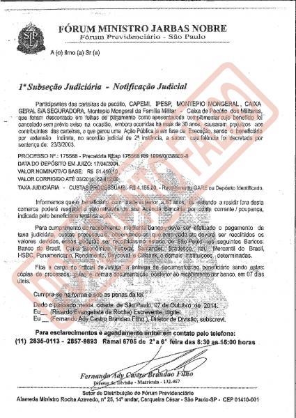 Desde outubro de 2014, várias pessoas têm sido vítimas de um golpe onde notificações judiciais falsas em nome do Fórum Previdenciário Ministro Jarbas Nobre (conforme figura abaixo) são enviadas por correspondência a suas residências solicitando que elas depositem quantia em dinheiro, relativa a uma suposta “taxa judiciária”.